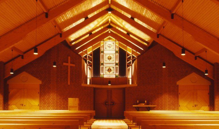 Gebäudeform und Materialwahl orientieren sich an regionalen Bautypen. In der Fassadengestaltung und Detailausbildung zeigt das Gebäude seinen eigenen Charakter. Zwischen den Mauerwerksblöcken der Nebenräume spannen sich membranartig die in die Holzfassade integrierten alten Bleiverglasungen der ehemaligen Bremervörder Krankenhauskapelle. Diese enthalten christliche Motive und Symbole des Todes und der Wiederauferstehung. Das Tragwerk besteht aus Dreigelenkrahmen mit Leimholzriegeln.