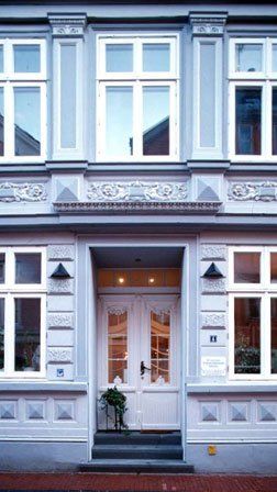 Das unter Denkmalschutz stehende Gebäude erforderte für die angestrebte Zahnarztpraxisnutzung im Erdgeschoss eine Umorganisation der Gebäudeerschließung mit hofseitigem Zugang zu den Wohnungen in den Obergeschossen. Dennoch mussten Fassaden- und Grundrissstruktur erhalten bleiben. Das Gebäude zeigt nur zum Hof seinen historischen Fachwerkcharakter. Die im Jahre 1905 vorgeblendete Straßenfassade wurde restauriert und in einem dem ursprünglichen Farbanstrich ähnlichen Ton neu gestaltet